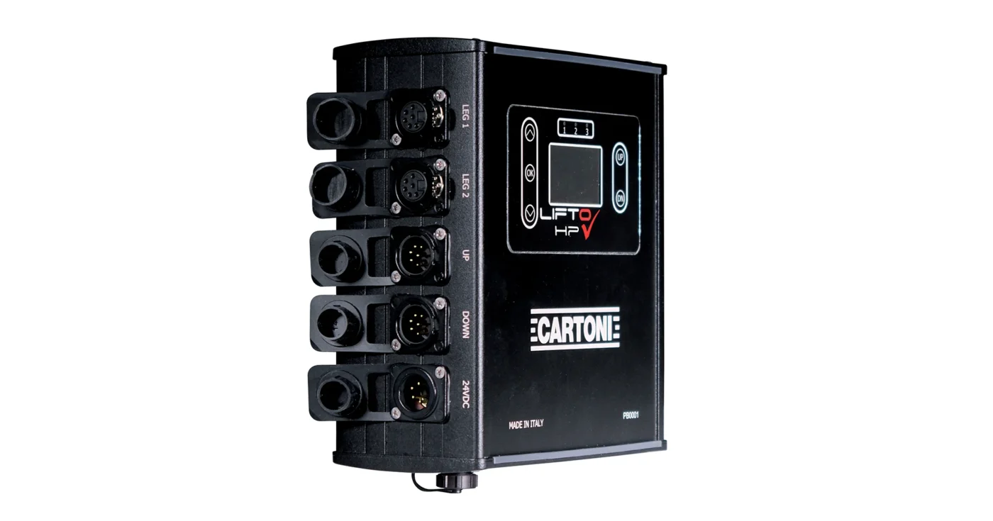La columna de elevación motorizada Lifto HP introduce una nueva unidad de control universal de Cartoni compatible con los principales controladores PTZ de Sony, Panasonic, Canon y Skaarhoj. El sistema puede funcionar con baterías o conexión eléctrica y cuenta con capacidad PoE+, permitiendo una única conexión para alimentar tanto los motores del Lifto como las cámaras PTZ. Diseñado para integrarse en estudios modernos, el sistema permite conectividad en red, almacena hasta 100 posiciones predefinidas y puede operarse con pedales opcionales.