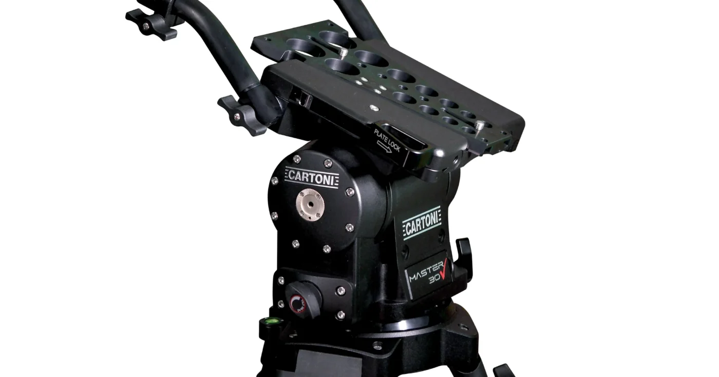 Diseñado para deportes y entornos de producción en exteriores (OB), el cabezal fluido Master 30 OB incorpora una placa deslizante compatible con sistemas de fijación en cuña tipo V. Ofrece un rango de inclinación de ±90°, arrastre fluido continuo y contrapeso, base Mitchell con adaptador opcional de 150 mm, así como indicadores digitales y nivel de burbuja iluminado para una configuración rápida y precisa.