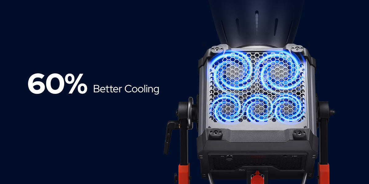 Esta combinación de intensidad y eficiencia lo convierte en una opción ideal para escenas que requieren alta iluminancia sin aumentar significativamente el consumo eléctrico ni el volumen del equipo.