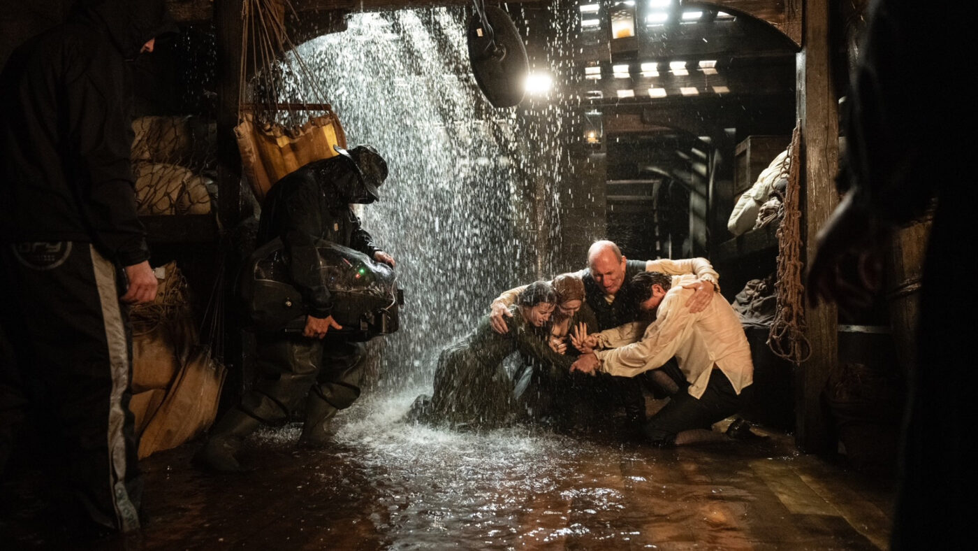 Eso fue en Suecia. Lo rodamos todo en dos días y medio. Teníamos cinco grúas porque era un barco real, y yo tenía que crear lluvia, nieve, bloquear el sol, subir luces y subir la cámara a una de las grúas para tener planos cenitales. Usamos esas grúas para muchas cosas diferentes.