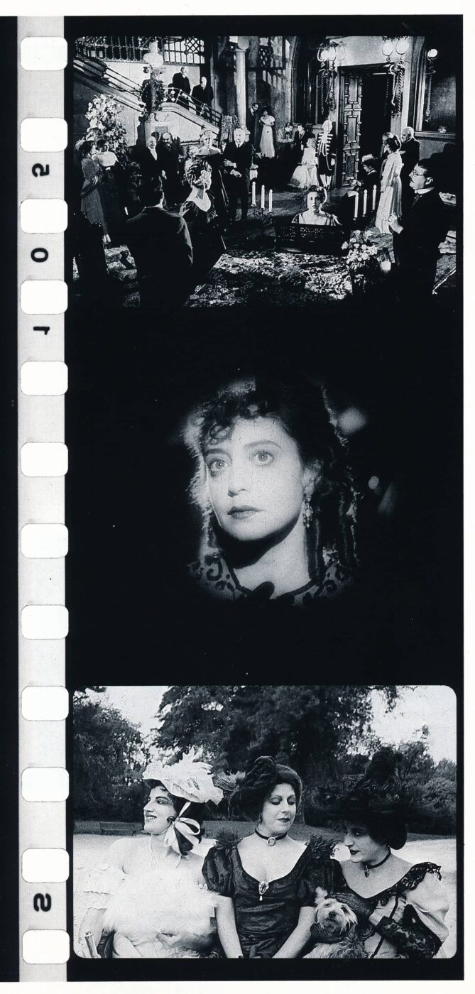 Para conseguir el aspecto degradado y sucio de una vieja película, someten a la emulsión fotoquímica a todo tipo de ‘vejaciones’: rayado del negativo original y del copión; ensuciado de negativo original y del positivo; rotura de perforaciones del copión; tratamiento del copión con abrasivos y anilinas colorantes; y tirajes en seco sin limpiar la película en truca y positivadora. La copia estándar de todo este bloque se positiva en B/N, en un rollo que se empalma con la película en color para no omitir el look característico de la emulsión plateada (se pierde al copiarla sobre la tri-capa de colorantes de un positivo en color). Estas viejas imágenes creadas por Pladevall aparecen a lo largo de la película para que el espectador imagine supuestas relaciones entre los personajes. Este bloque se manipula, en su mayor parte, en la truca óptica, con congelados, pantallas partidas, dobles exposiciones, aceleraciones, ralentizados y ampliaciones. Este bloque se positiva en color para permitir la percepción de los tintes de la supuesta degradación química que la vieja película ha sufrido con el paso de los años. Ya que este trabajo de truca se efectúa intermitentemente, se dilata en el tiempo, junto con la inexistencia de controles sensitométricos de los baños en el laboratorio que revelaba la película intermedia negativa de 35mm, cada fragmento realizado en una jornada diferente tenía colores ligeramente distintos entre las zonas oscuras y en las altas luces que Pladevall advierte a pesar del trabajo exhaustivo de etalonaje.