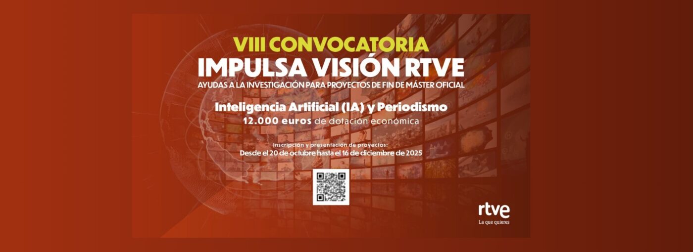 La Inteligencia Artificial (IA) y el periodismo constituye el objeto de la VIII convocatoria de Impulsa Visión Ayudas a la Investigación RTVE, que cumple su VIII edición. En esta ocasión los trabajos fin de Máster (TFM) deberán investigar acerca del impacto de la IA en el mundo del periodismo y en los medios de comunicación: desde la transformación de los roles profesionales a la generación de información y contenidos, pasando por sus aspectos técnicos, deontológicos y los nuevos retos para la verificación y la lucha contra la desinformación.